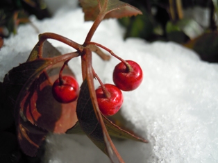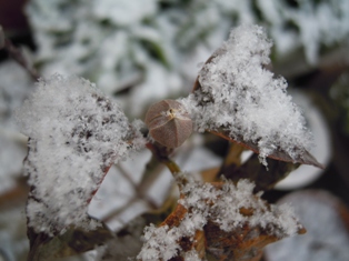 お庭もうっすら雪をかぶりました。クリスマスローズの蕾もなかなか大きくなりません。早く咲いてくれないかな~ ホリホックにも雪。ハナミズキにも…