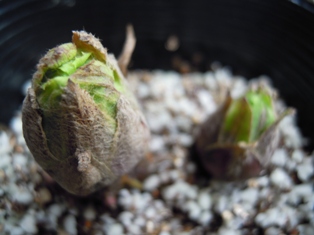 昨日植えて、水をたっぷりやりました。氷点下になるのを夜中に思い出して、玄関の中に入れてやりました。セーフ… カチカチの土になるところでした。